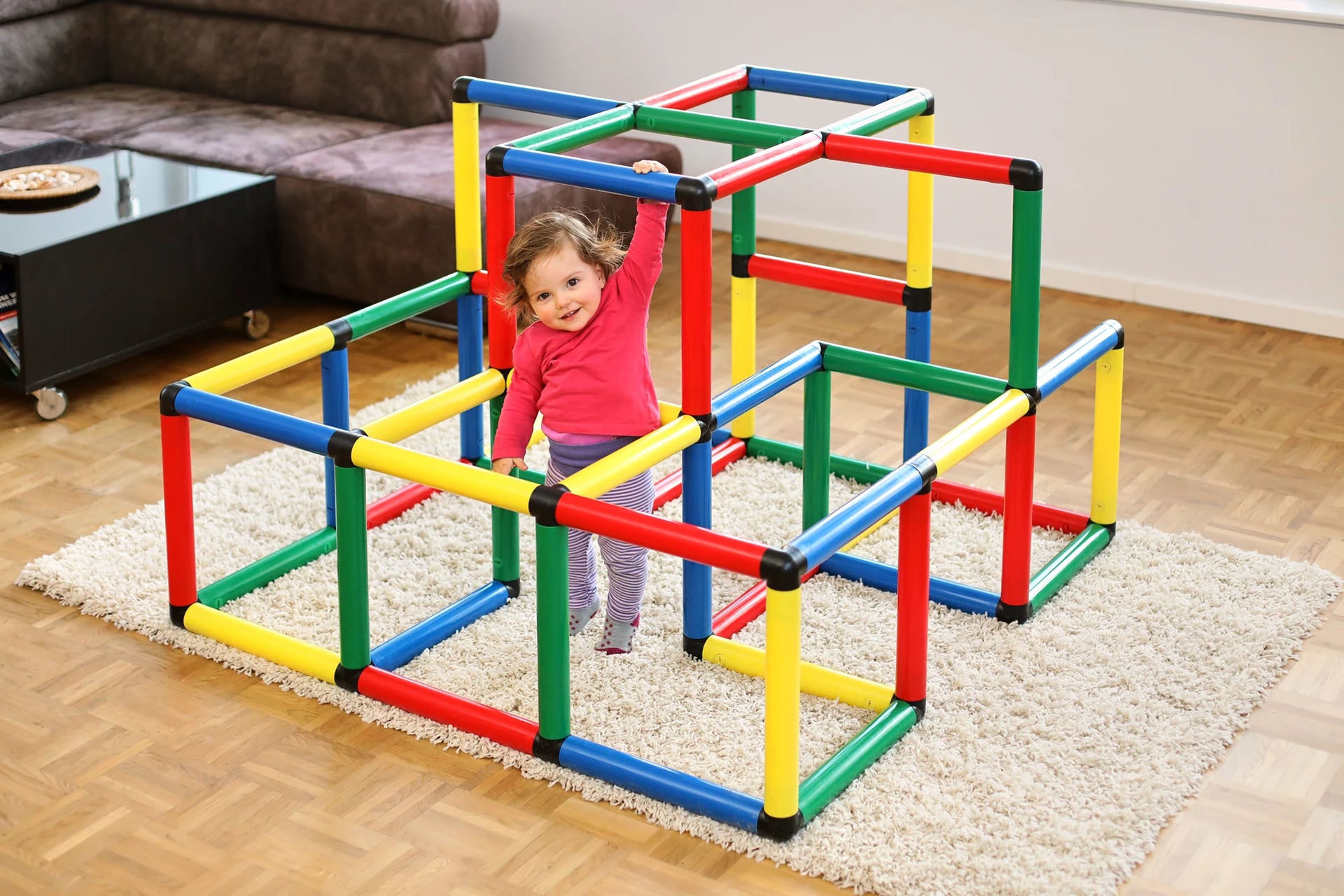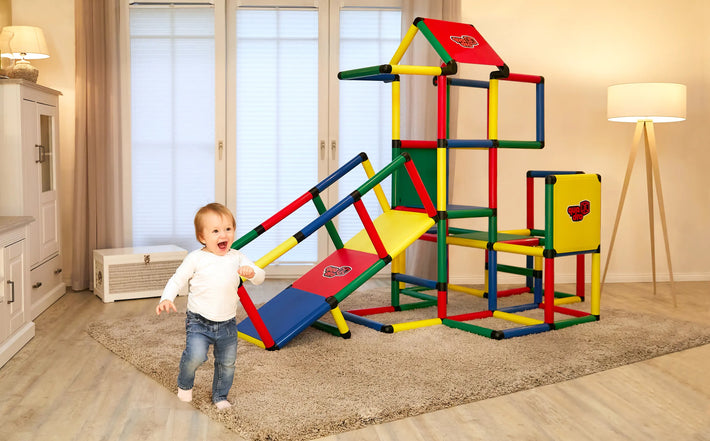 It provides the components you need for building a play tower that will satisfy different ages at once, from baby to toddler to school child.