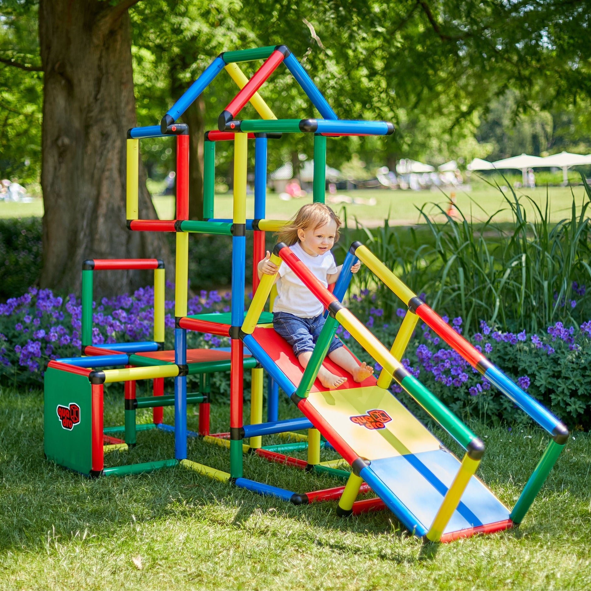 The climbing pyramid is perfect for young adventurers, offering an ideal way to practice balance and climbing skills. With the addition of the Adventure extension, this set includes essential plates and connectors, allowing the construction of a fun, small slide.