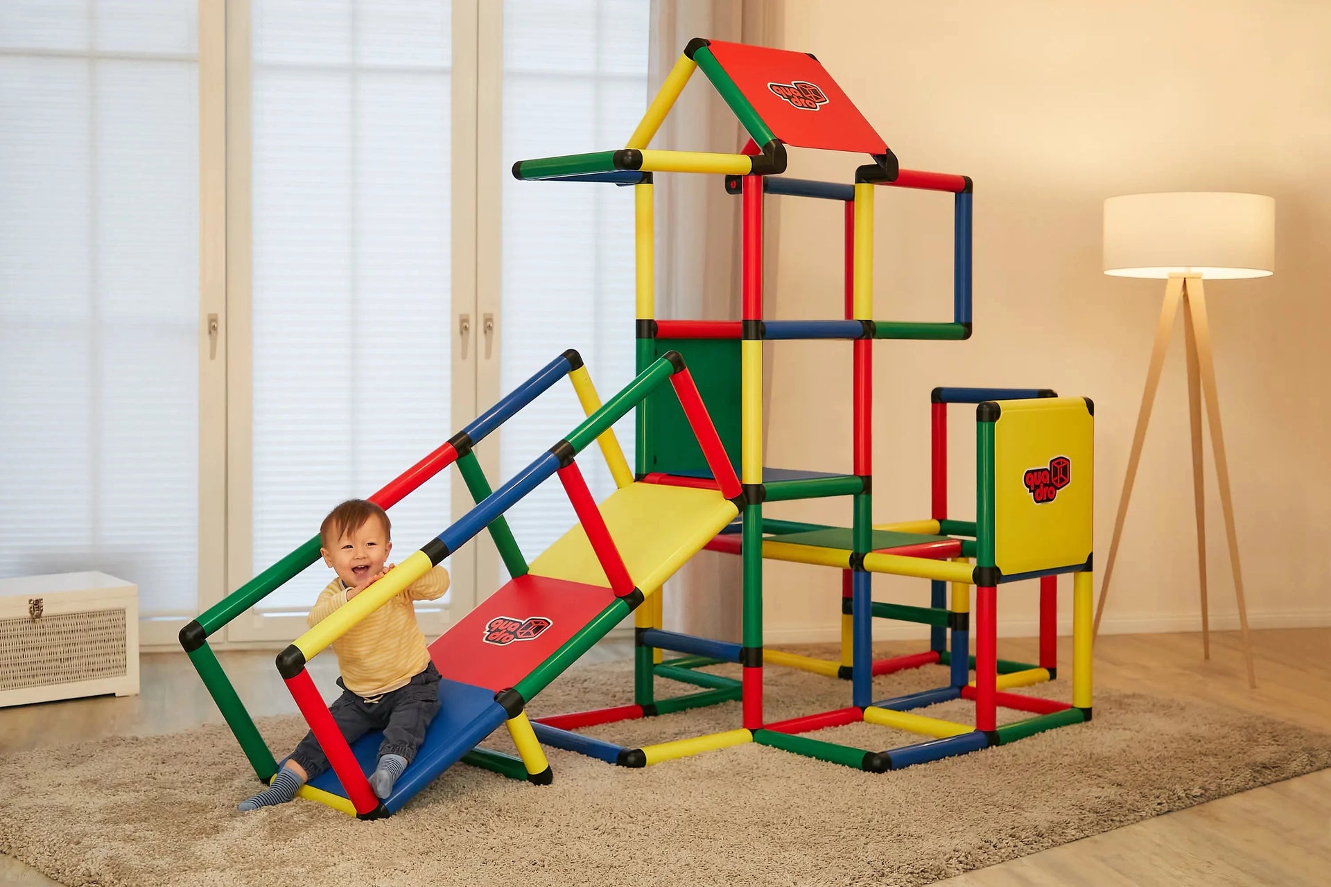 In addition, nothing stands in the way of use on the beloved white carpet, because the QUADRO individual parts can not stain and leave stains. A great advantage over many climbing frames made of wood.