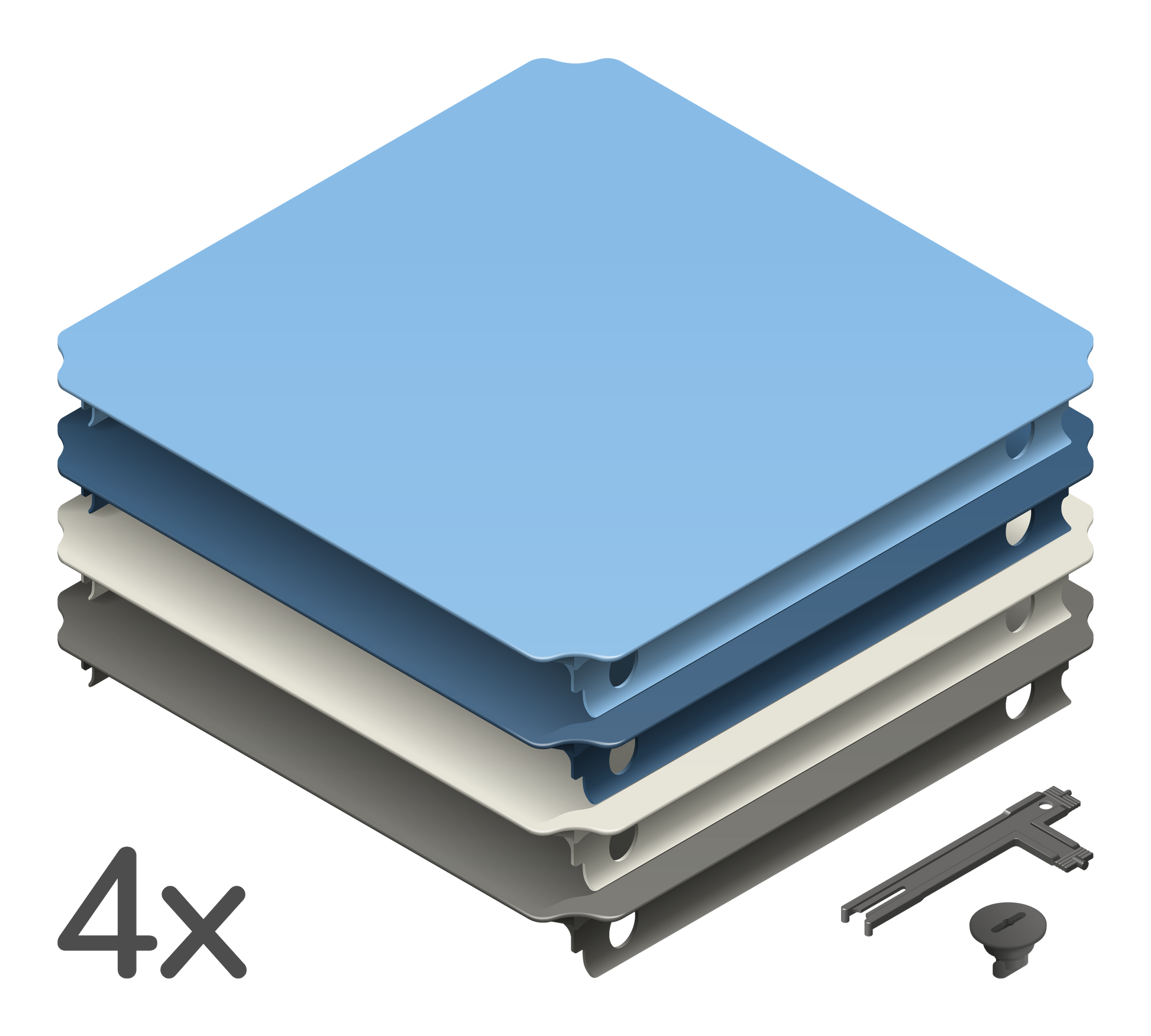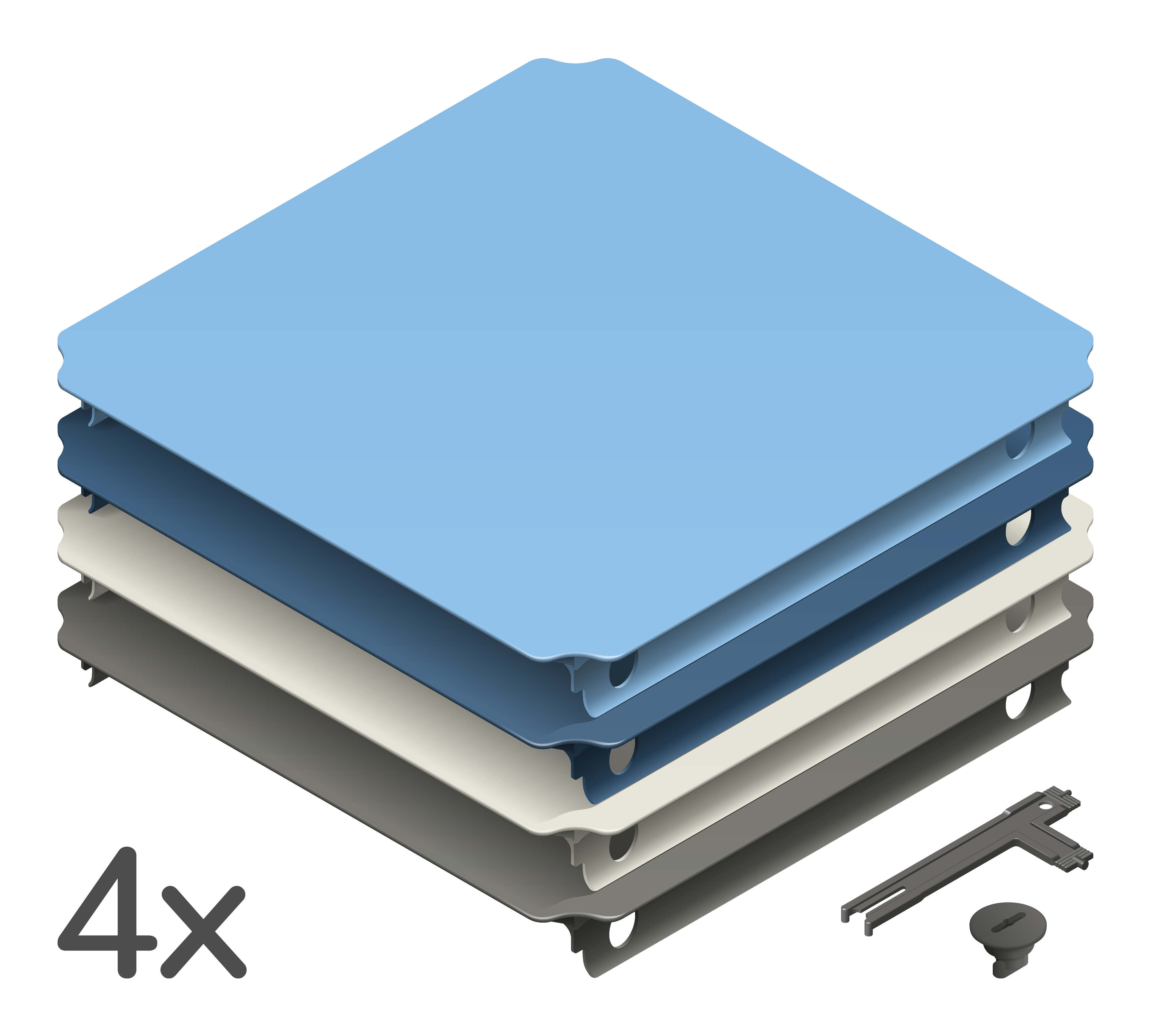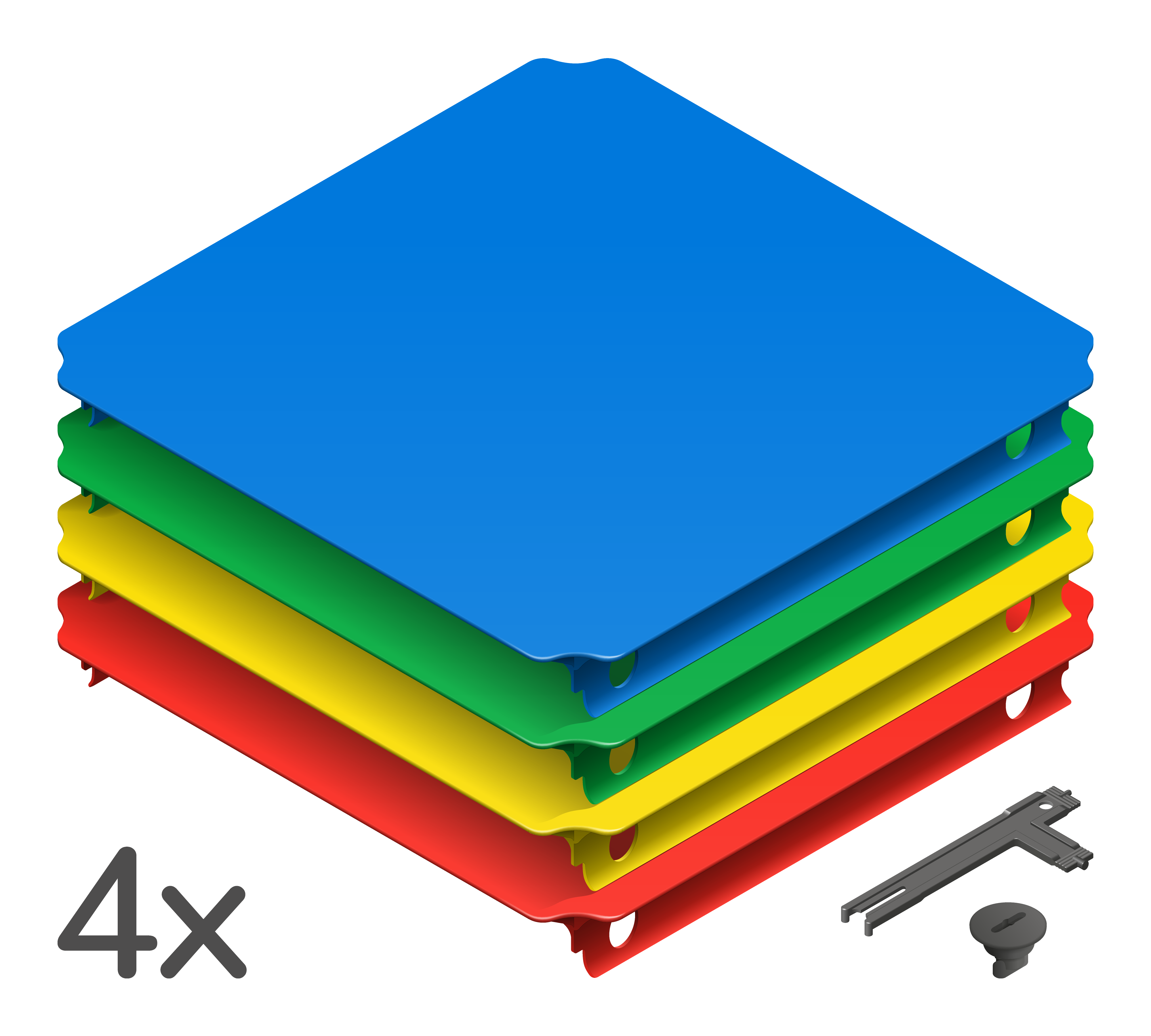 The Panel Set S contains 4 40 x 40 cm panels and the 16 panel screws required for installation, including 2 keys.
