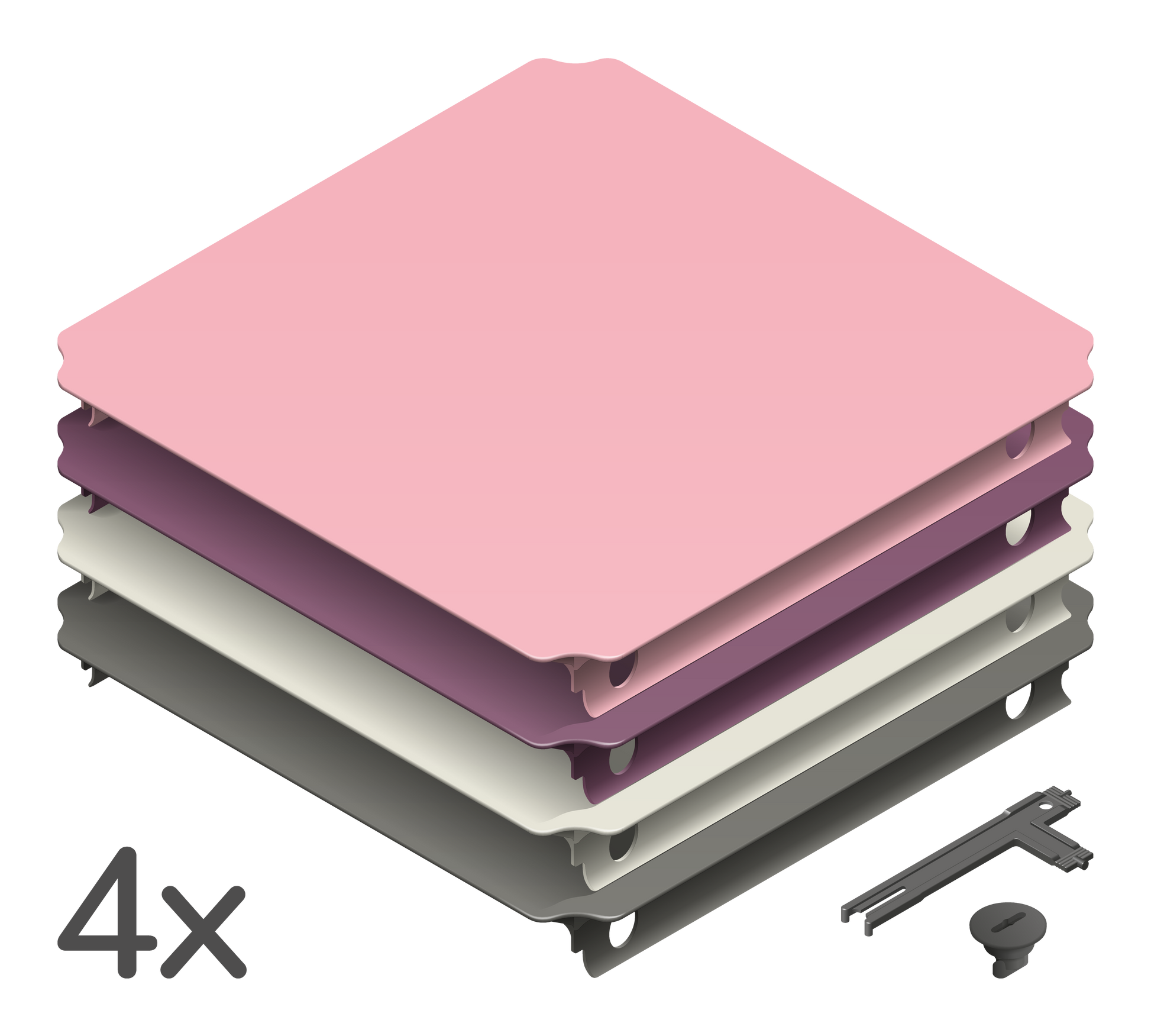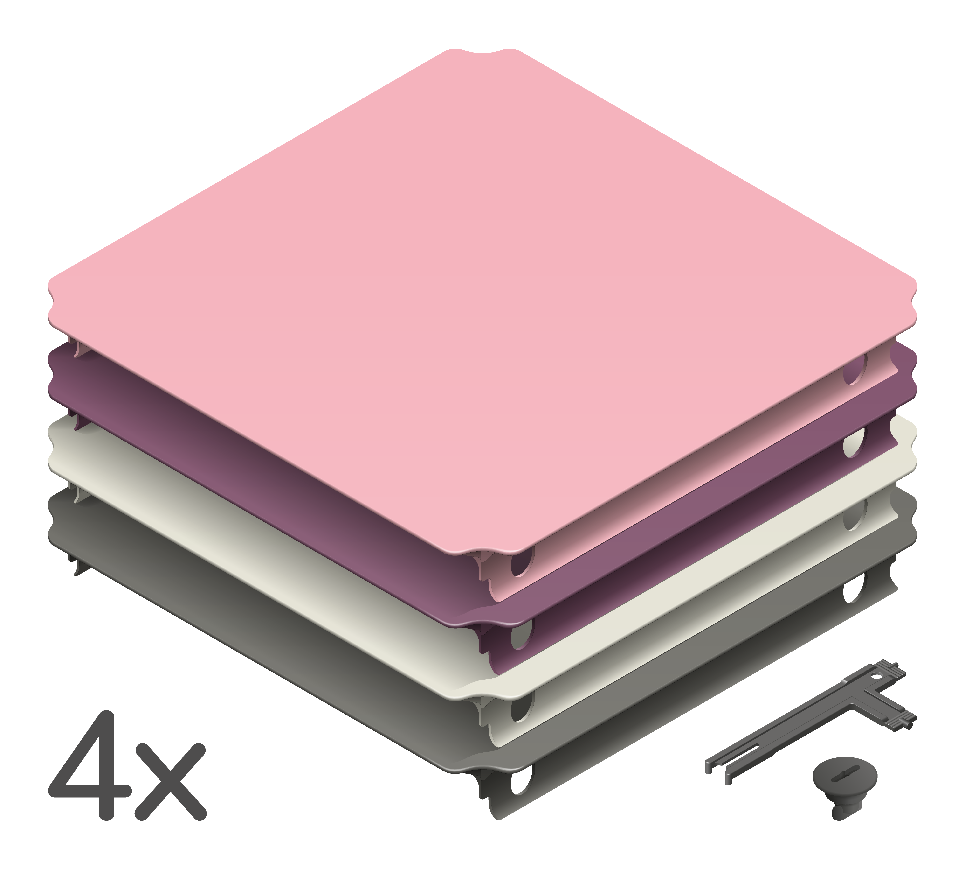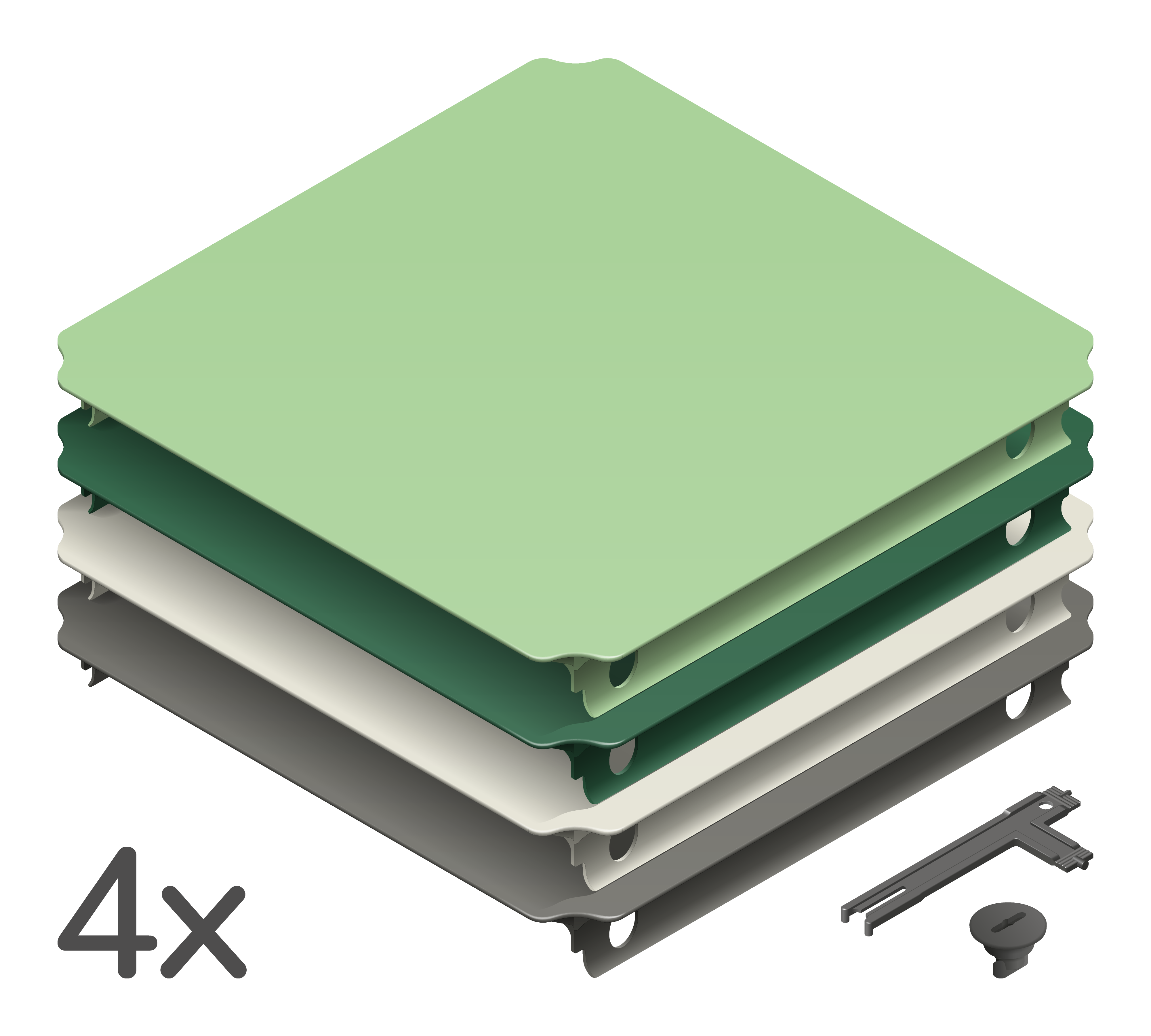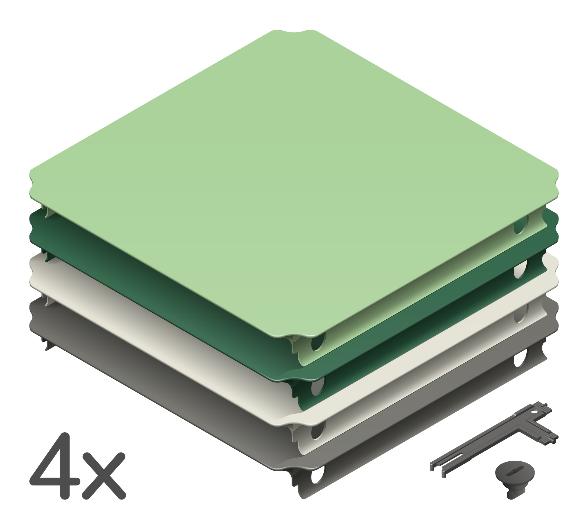 The Panel Set S contains 4 40 x 40 cm panels and the 16 panel screws required for installation, including 2 keys.
