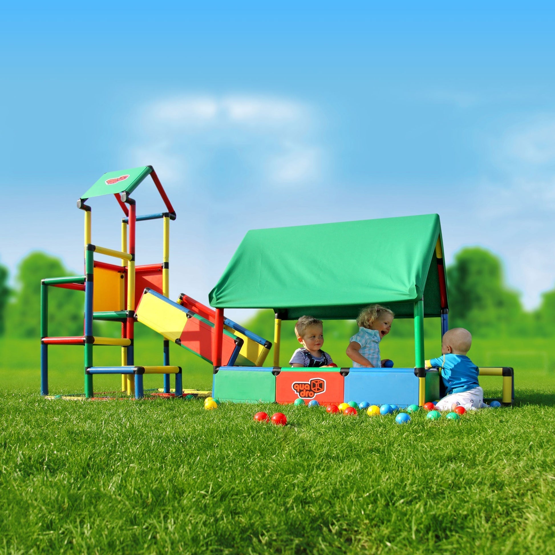 Ultimate is the result of many customer requests for a construction kit with baby steps of 20 cm (8 in) high and therefore suitable for children starting at 1 year old. An incredible range of designs are available, from a baby ballcage with baby slide to a fully enclosed knight’s castle.